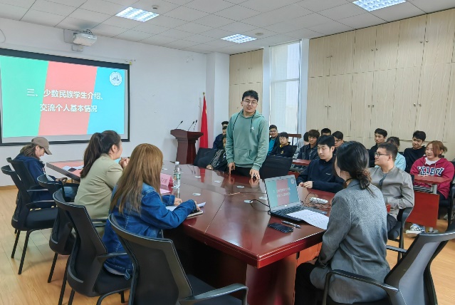 会议伊始,周冬梅首先介绍了学院少数民族学生的总体情况,以及学院对少数民族学生在学业、生活、就业等方面开展的帮扶指导工作,指出少数民族学生是学院大家庭的重要组成部分,学院高度重视对少数民族学生的培养和关爱。她表示,希望少数民族同学牢固树立正确的国家观、历史观、民族观,坚定政治方向,听党话、跟党走;充分发挥自身特长,积极参与校院各类活动,促进全面发展;加强与老师、同学的沟通交流,与各民族同学相互学习、相互帮助、相互尊重,共建团结和谐的文明校园。
