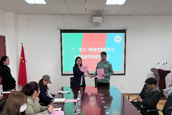 随后,周冬梅作为教师代表与2022111班的少数民族学生代表努尔艾力·图拉克签订了《美加墨世界杯官方网站教师与少数民族学生结对协议》。学院通过一对一结对的形式深入开展对少数民族学生的关心和关爱,在思想引领、学业指导、生活帮扶、身心健康等方面为学生提供各项服务和保障,培养学生的家国情怀,努力提升学生各方面的能力和素质。