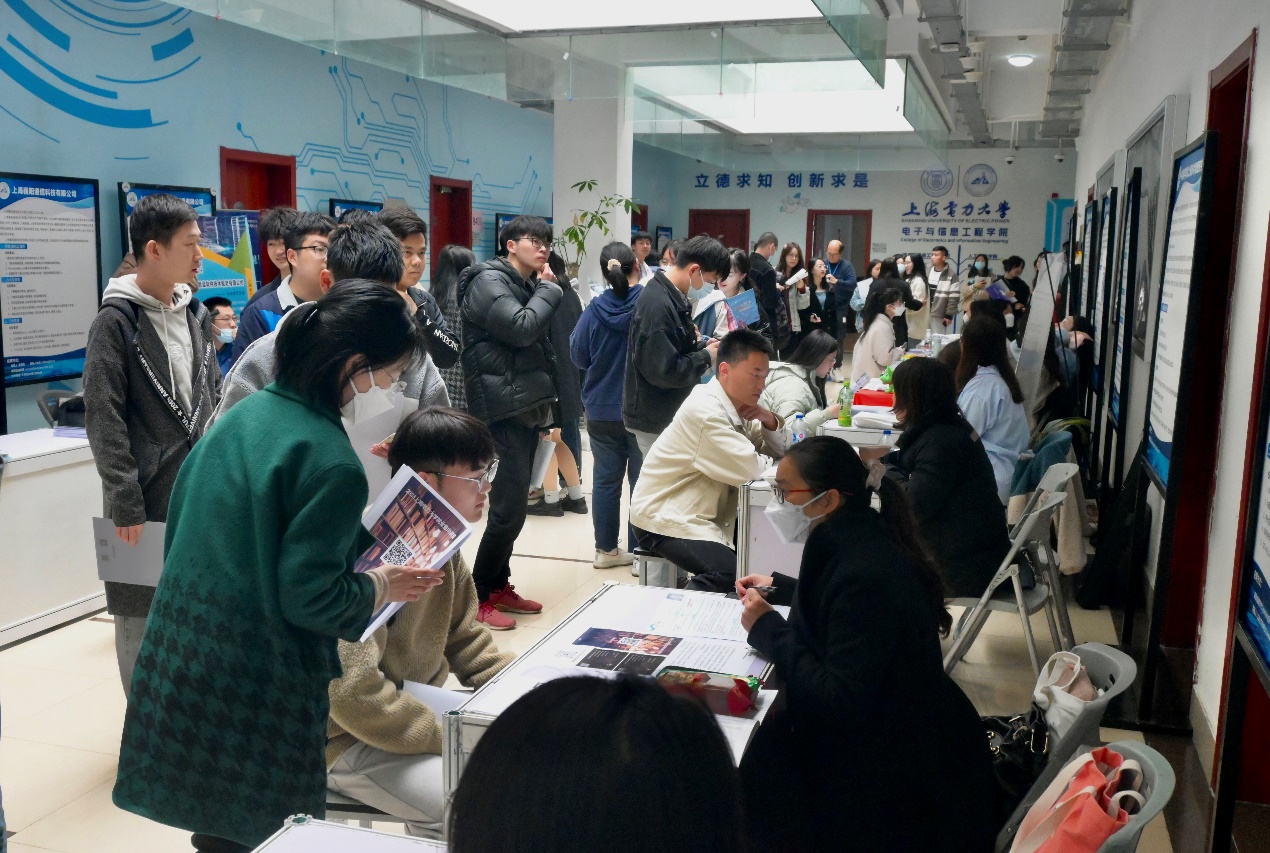 到场的30余家单位提供了近1000个电子信息类及相关专业的就业岗位,招聘会现场熙来攘往,场面火爆。2023届毕业生携带个人简历,细心研读企业招聘信息,主动与招聘人员沟通咨询,积极投递个人简历。各招聘单位通过海报、宣传册详细向学生介绍企业概况、发展前景、晋升通道、薪资福利等情况,并耐心地为2023届毕业生答疑解惑,双方交谈热切,现场气氛活跃。热烈的氛围还吸引了众多本、研非毕业班的学生前来驻足聆听、踊跃尝试,提前了解企业招聘流程及要求,早做求职规划。