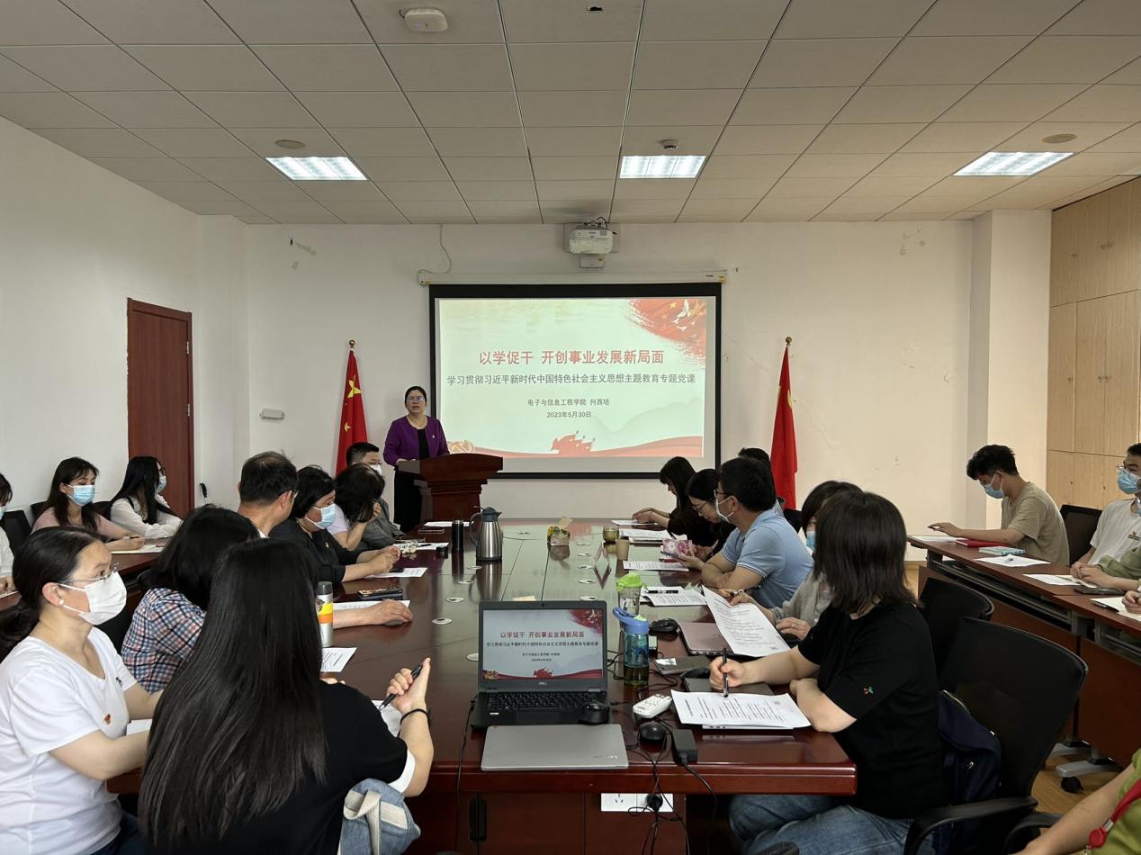 根据学校学习贯彻习近平新时代中国特色社会主义思想主题教育安排,5月30日,美加墨世界杯官方网站党委书记何西培以“以学促干 开创事业发展新局面”为主题,向学院师生讲授专题党课。学院党政班子成员、党支部书记、骨干教师、所在党支部党员及联系党支部党员参加,校主题教育第三巡回指导组陈静到会指导。