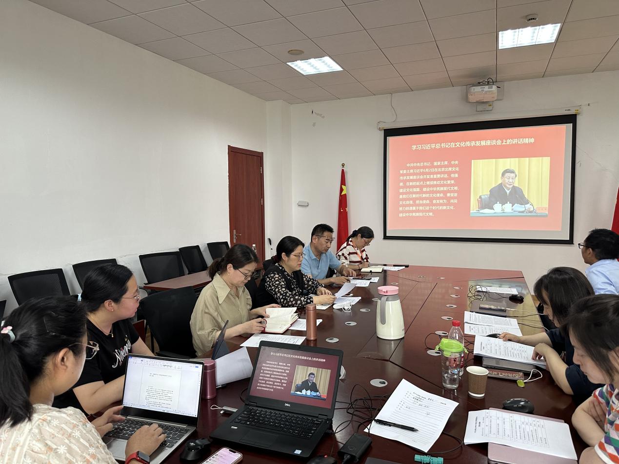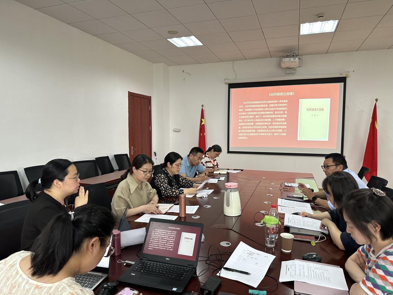会上,中心组成员集中学习习近平总书记在文化传承发展座谈会上的讲话精神、习近平总书记在中共中央政治局第五次集体学习时的重要讲话精神、《论科技自立自强》主题教育学习文件。