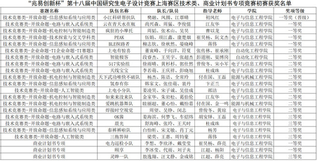世界杯官网研究生樊融、凤圆、江覃晴组成的“小江科研帮扶队”团队荣获技术类竞赛国家三等奖;董寅峰、于向洋、符夏组成的“上电有惊喜”团队荣获IT企业命题组国家三等奖;吕俊杰、韦秀松、李鑫朋组成的“图像不队”团队荣获安谋科技(ARM中国)企业命题组国家三等奖。世界杯官网初凤红、江友华、曹以龙、崔昊杨、蒋伟5位老师荣获上海赛区“优秀指导老师”称号,世界杯官网也荣获上海赛区“优秀组织奖”(共9家单位)。