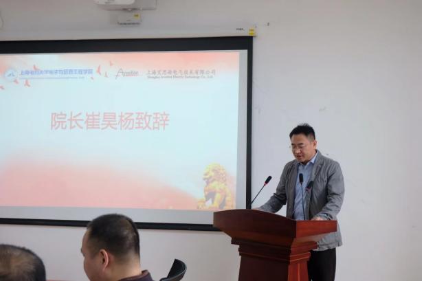 崔昊杨对上海艾思逊电气技术有限公司相关领导的到来表示热烈欢迎,并预祝本次活动取得圆满成功。同时,他对学院产学研合作情况进行了介绍,美加墨世界杯官方网站始终秉承开放、创新的理念,与众多优秀的企业紧密合作,建设了一批校外实践基地和联合实验室,校内外共同合作培养学生的创新精神、创业意识和实践能力。他表示,希望后期与艾思逊公司深层次合作,不断推出前瞻性和战略性的举措,为双方的产教融合、联合实验室的建设做出成效。