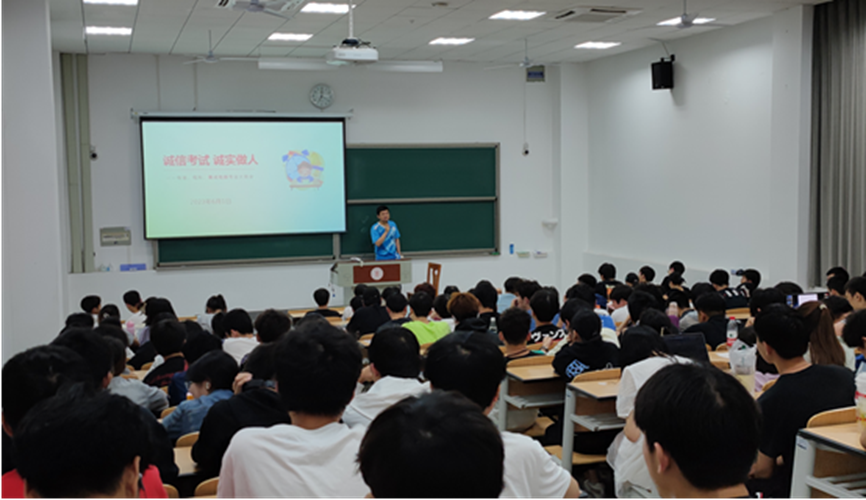 其他年级辅导员也和专业教师一起在班会中带领学生再次学习了《美加墨世界杯官方网站学生违纪处分规定》及《美加墨世界杯官方网站本科生学籍管理规定》的相关内容,严肃强调了考试纪律以及学分审核办法,通过实际考试违纪案例,讲解了关于考试作弊的危害,强调备考注意要点和考试时的注意事项,提醒学生科学备考、用心准备、诚信应考。