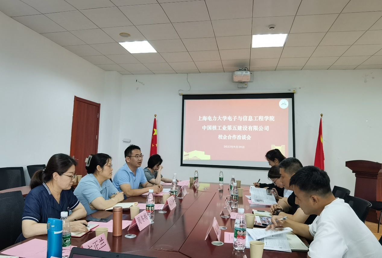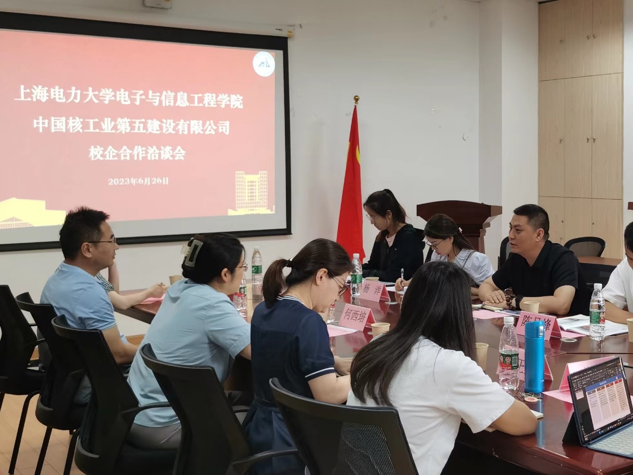 为加强产学研紧密结合,促进校企合作共赢,6月26日下午在临港校区电计楼B402会议室,中国核工业第五建设有限公司工程研究院副院长王树昂、工程研究院综合办主任杨洋、智能焊接研究所副所长陈月峰等一行来校与美加墨世界杯官方网站开展校企合作洽谈。学院党委书记何西培、院长崔昊杨、党委副书记周冬梅、副院长薛亮、党委委员邵洁、专任教师曾俊冬、卞正兰、辅导员刘姝参加了本次洽谈会。