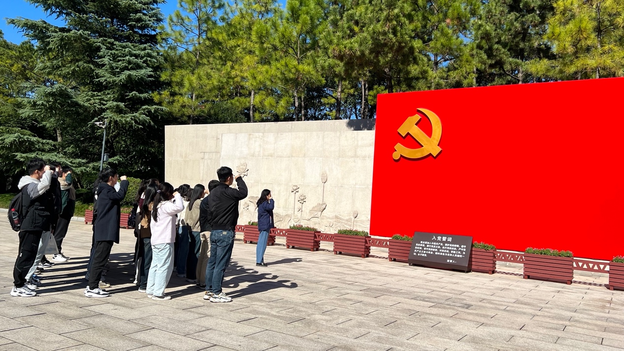随后,在南湖革命纪念馆的宣誓墙前,在学院党委书记何西培的带领下,全体师生党员高举右手,面对鲜红的党旗重温入党誓词,郑重地许下铮铮誓言,铿锵有力的宣誓声在南湖的上空回荡,进一步坚定了师生党员践行初心使命的信心、决心,增强了时代责任感与使命感。