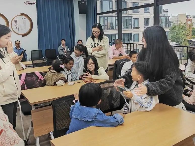 活动开篇,由电子学社提供的S1型机器人与无人机将全场的目光聚焦于讲台,志愿者用浅显易懂的语言讲解了S1型机器人与无人机的相关知识,并邀请小朋友们现场体验机器人与无人机操控,通过与智能科技的交互感受科创的魅力,让科创走进每一位小朋友心中。