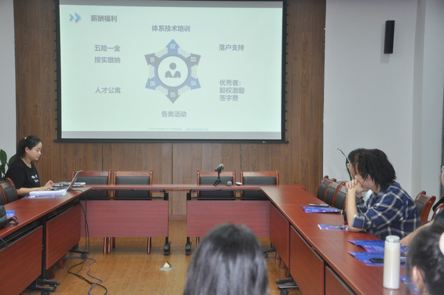着学生对企业的进一步了解,公司人资专员从工作与生活两个方面向同学们详细介绍了招聘岗位、培养方式与晋升机制,具体分析了不同岗位所属门类以及需要具备的能力。最后她代表公司向同学们发出诚挚的邀请,期待与上电学子共同挑战当今时代的新课题。