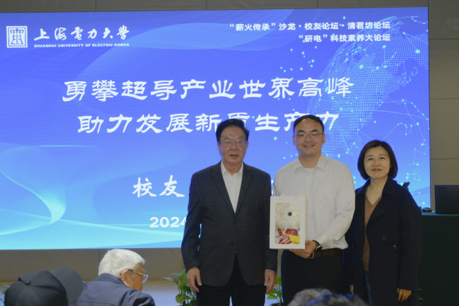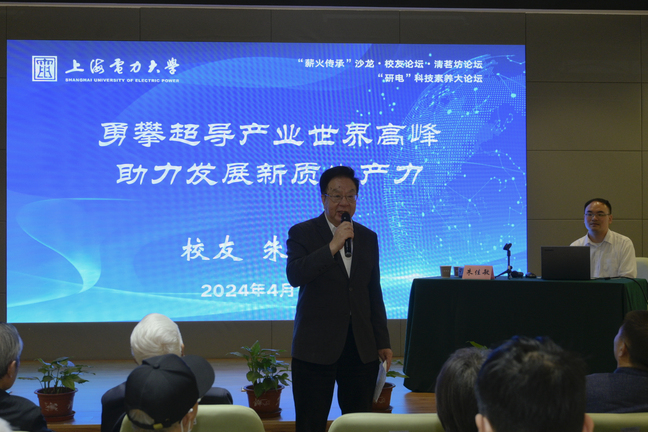4月19日上午,“薪火传承”沙龙第五期暨校友论坛在杨浦校区雲鄉閣举办。沙龙邀请了优秀校友朱佳敏作为主讲嘉宾,主题为《勇攀超导产业世界高峰 助力发展新质生产力》。沙龙吸引了老中青三代上电人的关注与参与,校老教协会长、老校长曹家麟,对外联络处处长丛亮,研究生院院长唐忠,校老教协部分会员、研究生院青年师生等近70人参加。活动由离退休党委书记刘洁荣主持。