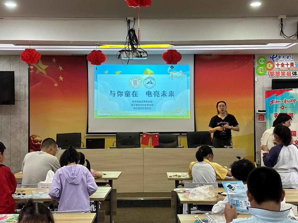 5月25日上午,在“六一”国际儿童节即将到来之际,机关纪监巡审党支部与美加墨世界杯官方网站电子电科本科生党支部前往海汇居民区联合开展主题为“与你'童'在 ‘电’亮未来”的党日活动,机关纪监巡审党支部书记潘耀芳、电子电科本科生党支部党员、海汇居民区的家长、儿童共30余人参与本次活动。本次活动的目的是加强区域内党建联建工作,勉励学生奋发图强、成长成才,发挥党员模范作用,激发广大青少年点燃科技创新的梦想。