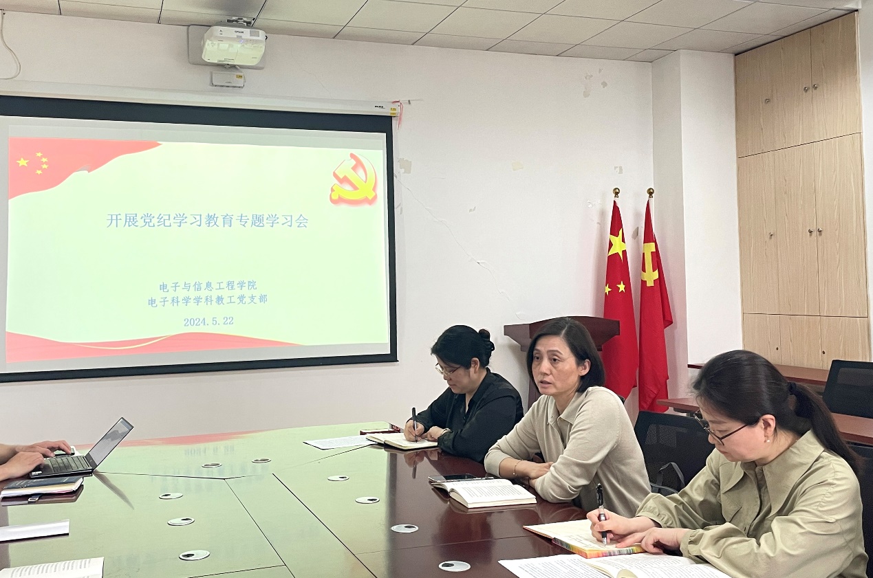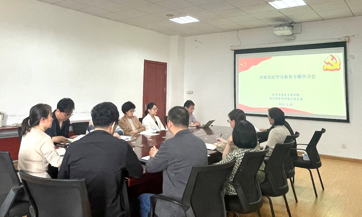 为落实党纪学习教育工作部署,认真学习贯彻《中国共产党纪律处分条例》,推动支部党纪学习教育走深走实,5月22日下午,美加墨世界杯官方网站电子科学学科教工党支部在电计楼B402会议室开展党纪学习教育专题学习会。联系支部的校党委常委、校统战部部长、机关党委书记陈凌,美加墨世界杯官方网站党委书记何西培和支部全体党员参会,会议由支部书记杨芳主持。