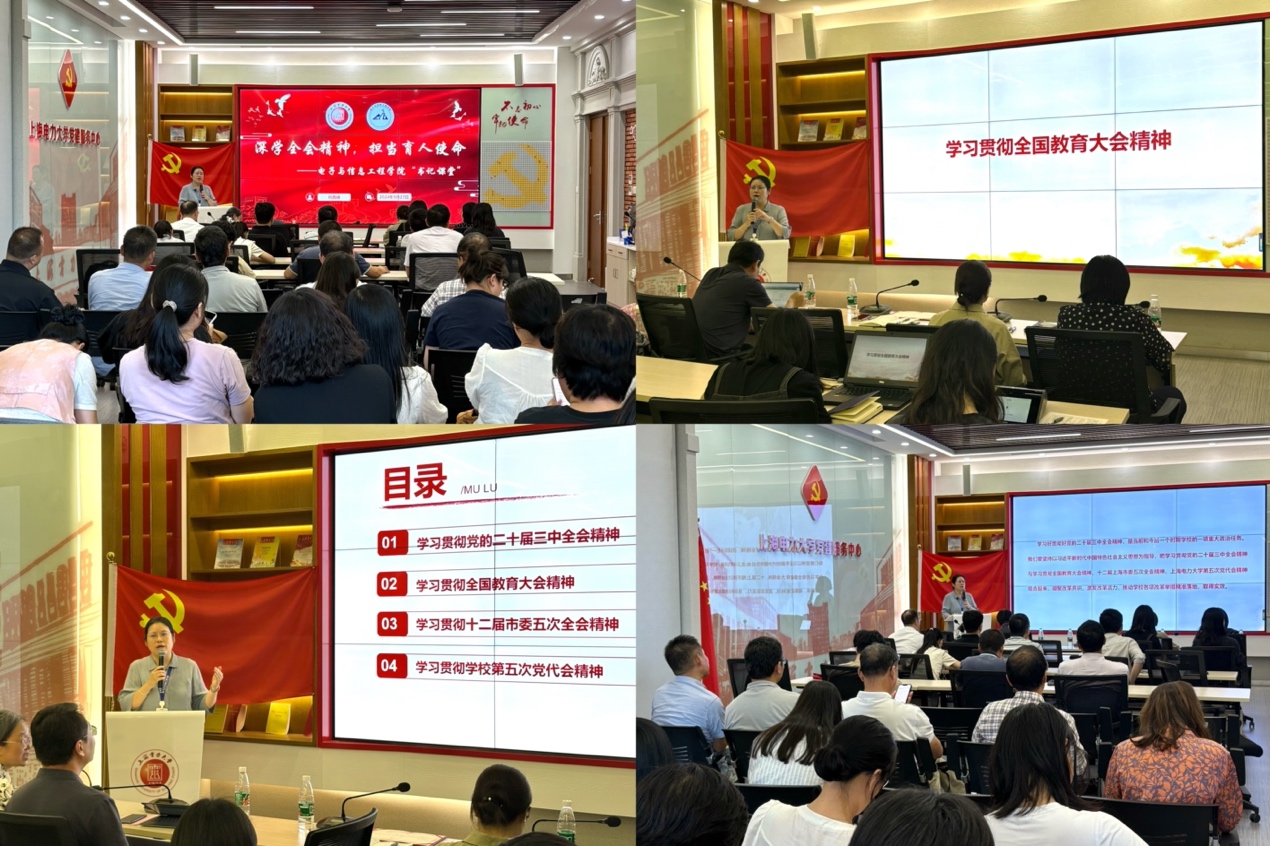 最后,何西培以“深学全会精神,担当育人使命”为主题作“书记课堂”。领学了党的二十届三中全会精神和习近平总书记在全国教育大会上的重要讲话精神,强调全体教职工要深入学习领会会议精神和核心要义,坚持不懈地用习近平新时代中国特色社会主义思想凝心聚魂,弘扬教育家精神,涵养高尚的师德师风;坚持立德树人根本任务,持续做好人才培养工作;落实落细有组织的科研活动,拓展多学科深层次融合,推动技术成果加快转化;积极拓展资源,凝聚各方力量,持续提升学科和学院影响力。以国家战略需求为指引,全面深化改革,心怀大局,立足岗位,以奋进务实的姿态在新学期做好人才培养、科学研究和管理服务工作,将其转化为推动学院发展的不竭动力。