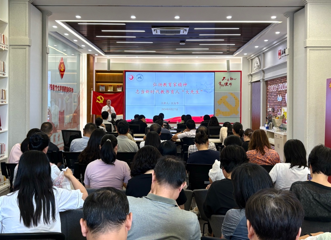 “全国优秀教师”获得者江友华以“弘扬教育家精神,志当新时代教书育人‘大先生’”为主题作“师德讲堂”,他以生动的语言和感人的故事,向与会者分享了自己的求学经历、教学科研心得以及面对癌症挑战时的坚韧与乐观,结合自身深耕教育领域多年的经历,进行了关于教育家精神与新时代教书育人经验的分享,鼓舞学院教师深耕细作,兢兢业业育人,以德立学、以德施教,做学生锤炼品格、学习知识和创新思维的引路人。