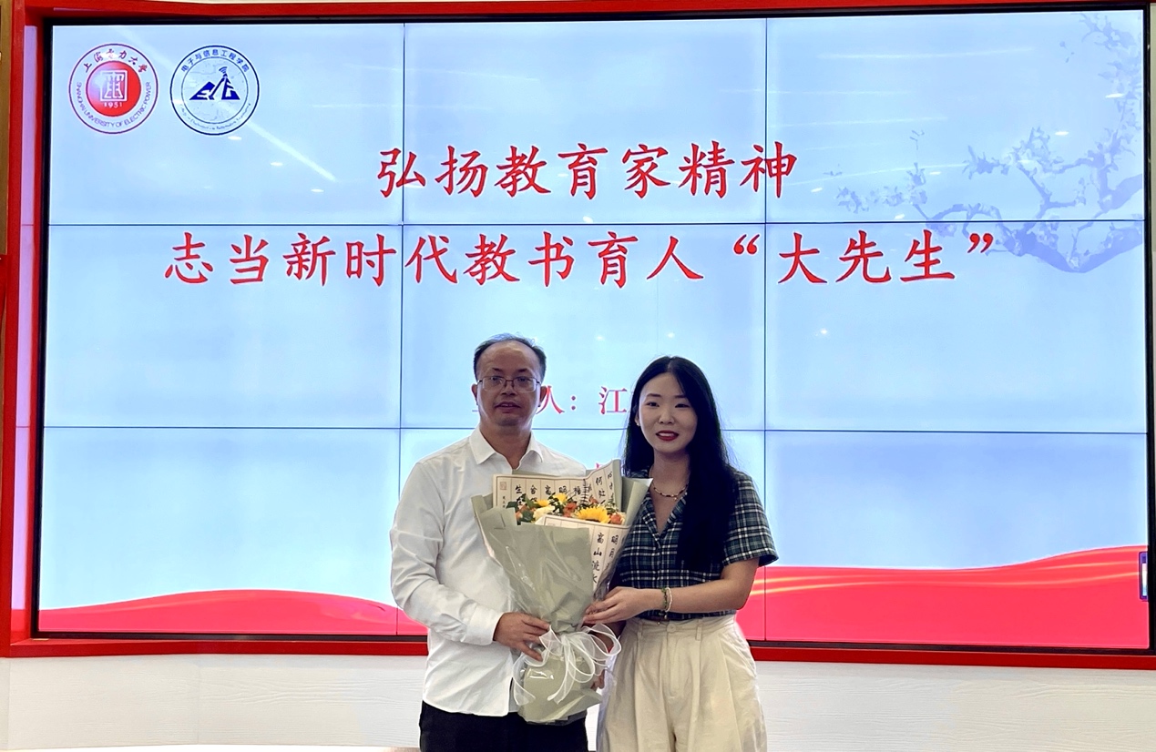 在互动交流环节,江友华解答了青年教师关于职业发展、教学科研、人才培养等方面的问题,学院教师代表为江老师献花,对江老师的无私奉献与卓越成就表示感谢与祝贺。江友华以自己的一言一行诠释着一名优秀教师对教育的忠诚、对学生的热爱,弘扬了教育家精神。他数十年躬行亲为、敢为人先的敬业精神,淡泊名利、甘于奉献的高尚情操都深深教育和激励着全院教师立足岗位,潜心育人,开拓创新,敬业奉献,在教书育人的道路上不断前行,勇攀高峰,为培养更多德智体美劳全面发展的社会主义建设者和接班人作出新的更大贡献。