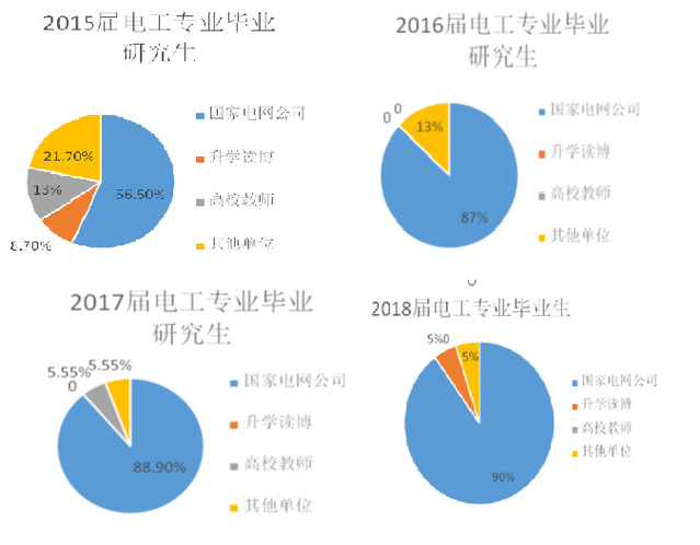 美加墨世界杯官方网站历届研究生都100%完成就业,其中80%的毕业生进入电力系统工作,其他毕业生有考入知名学府(上海交通大学、复旦大学、华中科技大学)攻读博士学位,有进入高等院校工作,也有进入其他企事业单位(商飞、民航、西门子、邮政局等)工作。