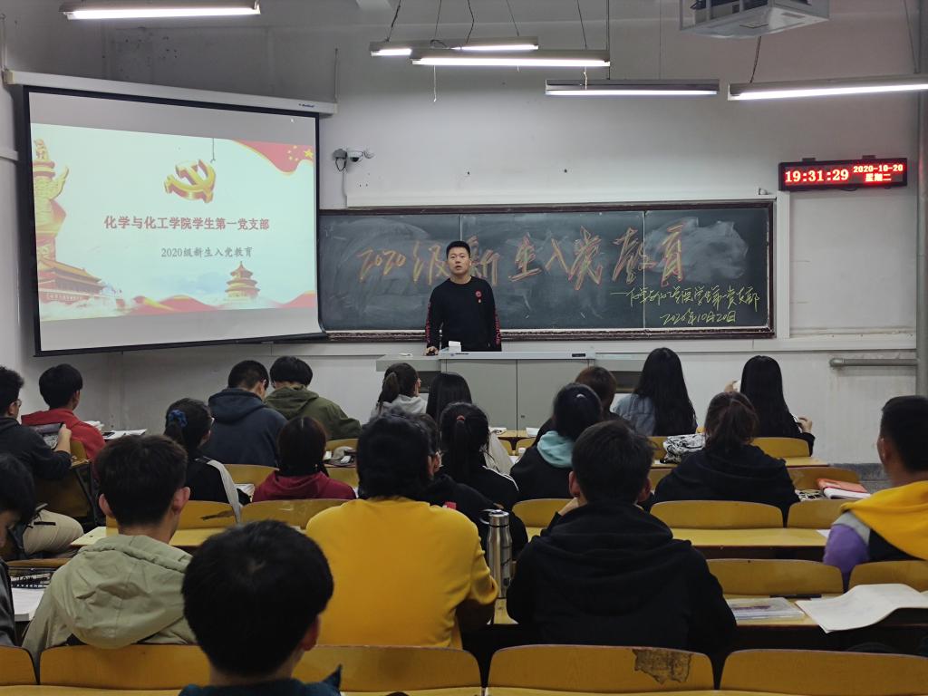2020年10月20日晚19:30beat365官方网站学生第一党支部在春晖学堂组织开展了2020级化学工程与工艺专业全体新生入党教育活动。此次活动按照班级发分三组进行,分别由组织委员张旭、宣传委员王桂娜组织开展。