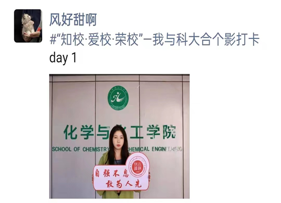 为进一步落实立德树人根本任务,让“知校”成为文化自觉,让“爱校”成为行为习惯,让“荣校”成为使命担当,beat365官网学生第一党支部组织全体党员、积极分子于5月4日-10日开展“知校·爱校·荣校”—我与科大合个影朋友圈打卡主题党日活动。