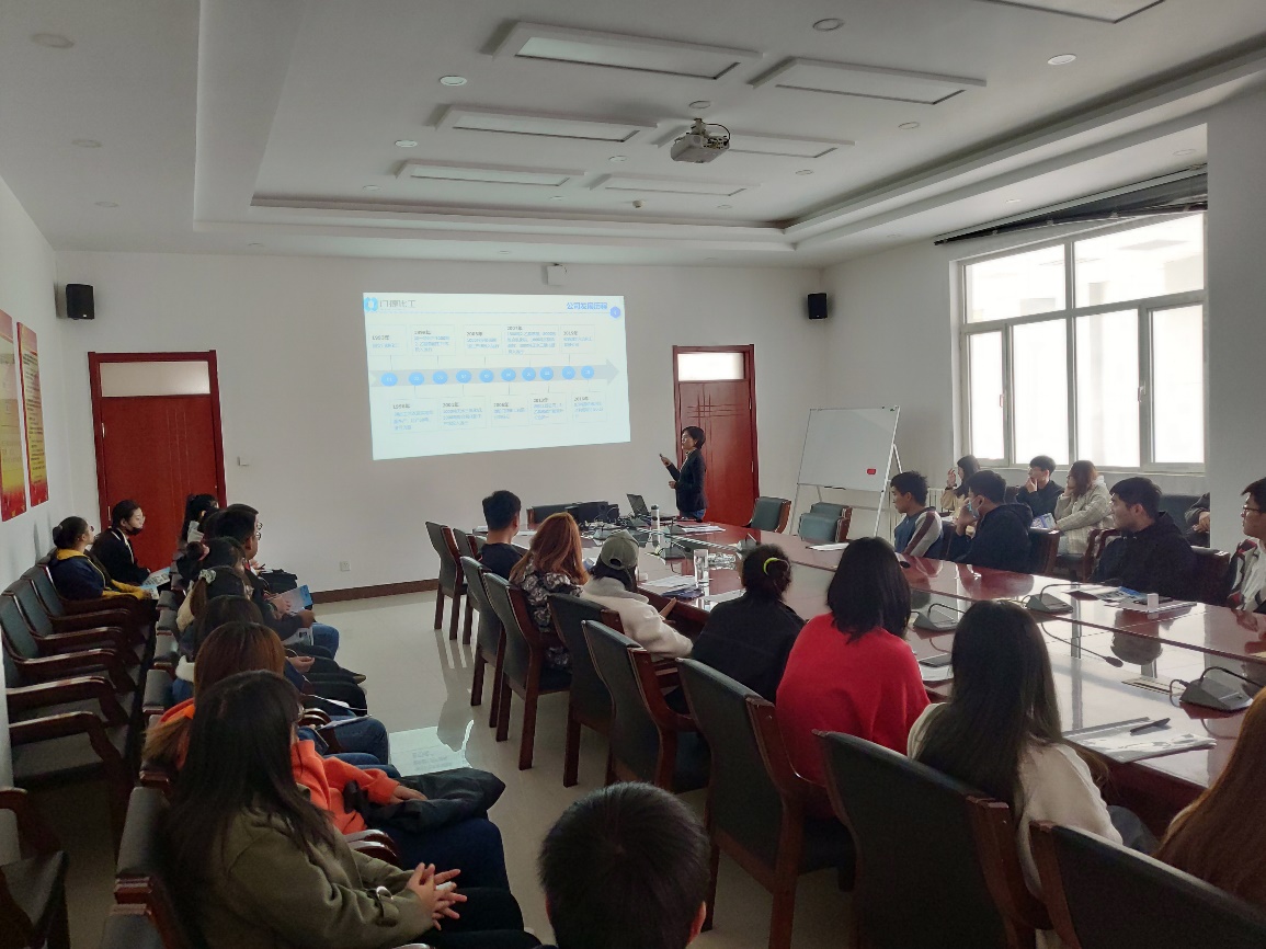 潍坊门捷化工有限公司前身为衢州门捷化工有限公司,公司成立于1993年,拥有固定资产1.2亿元,现有员工150余名。公司此次收到学院邀请,来校召开专场招聘会,招聘机电、化工、工程类相关专业40人。宣讲会上公司人事部经理通过企业宣传片及PPT介绍公司基本情况,并回答同学们关心的问题,收取简历后现场进行面试。