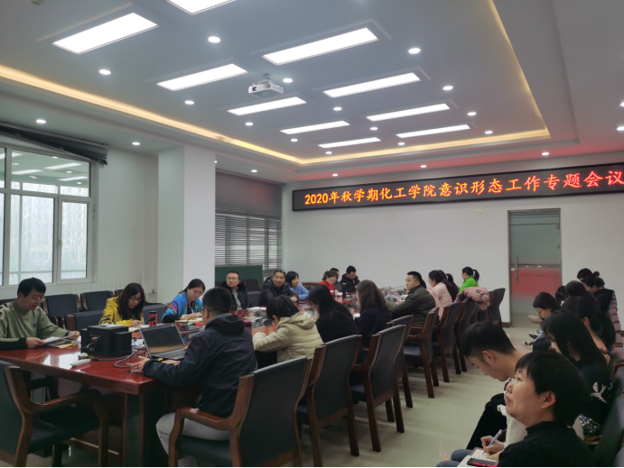 2020年12月3日下午15:00,beat365官方网站在逸夫楼E202会议室召开“2020年秋学期意识形态工作专题会议”。会议由学院党总支书记李松波主持,学院党政教领导、各系部主任、党支部书记、辅导员、全体班主任参加会议。