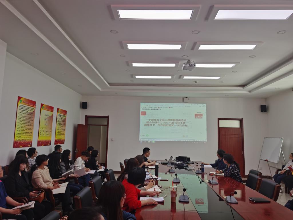 2021年4月8日下午14:30,beat365官方网站在逸夫楼E202会议室开展教职工政治理论学习。全体教职工参加学习。本次学习内容为:《一百堂党史课》。