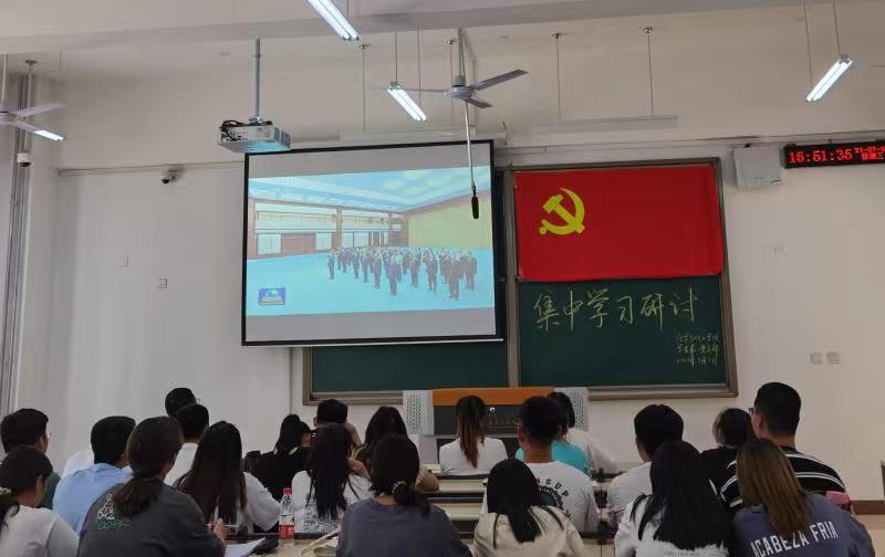 2021年7月7日下午16:30,beat365官方网站学生第一党支部组织全体党员在明德楼H110开展集中学习研讨。