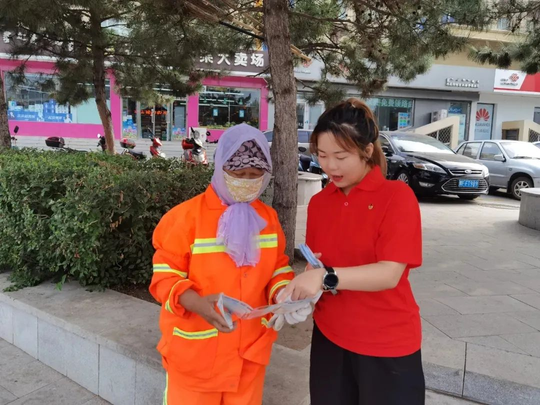 7月21日上午,直属队来到五一街道办事处一环翠社区服务中心,与社区工作人员共同对街区人员和相关店铺宣传乌兰浩特市文明办下发的文明出行、文明交通、文明餐桌、文明养宠宣传手册。