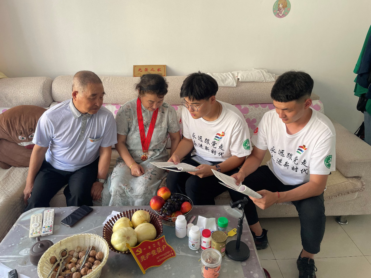 7月21日和27日前往老党员家中走访慰问,传承红色血脉,深化党史学习教育,开展“送学上门”活动。在走访慰问中,队员与老党员亲切交谈,详细询问他们的身体情况和生活现状,为她介绍了建党一百周年之际全党全国开展的党史学习教育工作,并为她送去阅读书籍,便于老党员开展理论自学。