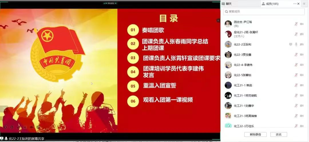 最后,全体团课学员共同观看《入团第一课》,号召beat365官网同学们坚定理想信念,锤炼高尚品质,厚植爱国主义情怀,不忘初心跟党走,牢记使命建新功,承担新时代新青年的责任与担当。