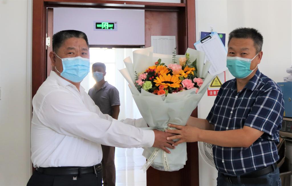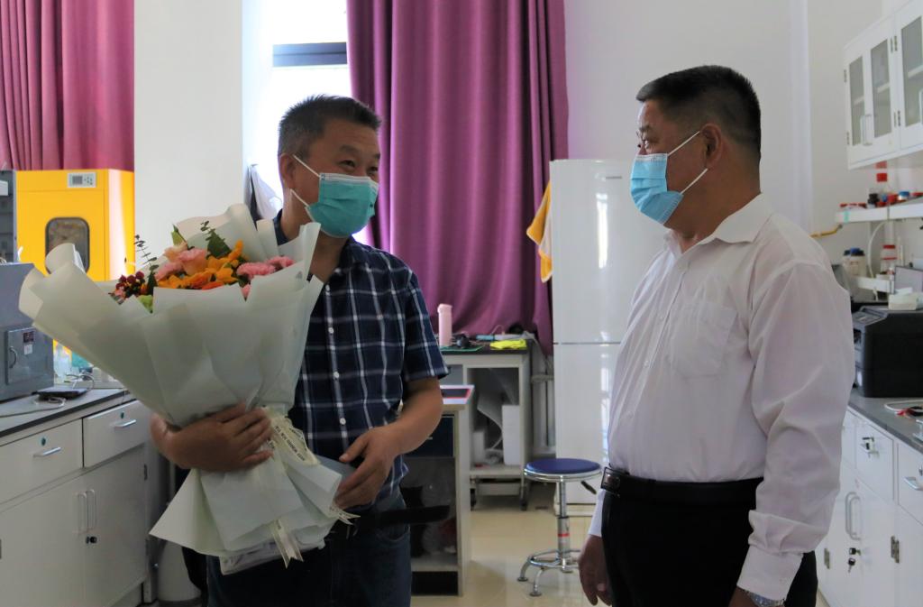 冯书记首先慰问基础化学教学部主任李国祥。冯书记首先对李国祥老师在教学工作中取得的成绩表示祝贺,并代表学校问候基础化学部全体老师教师节快乐!强调:“基础化学教学部承担着全校各类基础化学理论及实验课程的教学任务,工作量大,任务重,但老师们克服重重困难圆满完成了各项工作,尤其是化学实验室,环境整洁,物品摆放规则有序,安全防护措施到位,在保障正常教学的前提下,数十年没有发生任何安全事故。希望老师们继续发扬优良传统,把教学及科研等各项工作做得更加扎实,为学校双一流建设做出贡献。”