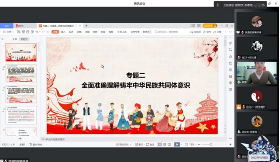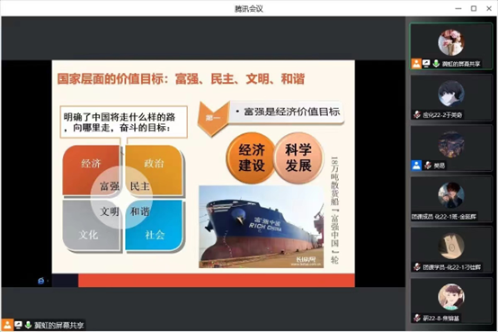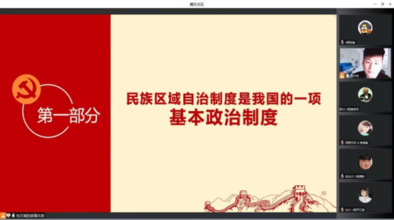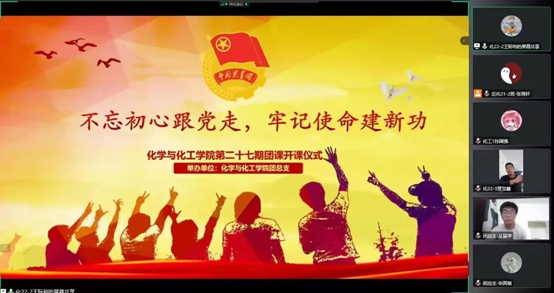 本期团课均为线上授课,邀请到学校党委统战部老师包文明、学院党委副书记王涛及学团办老师冀虹、梁玉洁、樊易、王晓敏为二十七期团课学员授课。本次团课授课内容为:民族区域自治制度解读;共青团的历史、《中国共产主义青年团章程》解读;全面准确理解铸牢中华民族共同体意识;《民法典》中老百姓最关心的50个法律问题及解答;深化党的二十大精神,学习党章修改决议;传承和弘扬中华优秀传统文化;社会主义核心价值观解读。