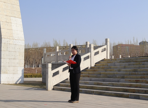 祭奠革命烈士仪式在雄壮的国歌声中拉开帷幕,首先,学生党员夏欣茹向大家介绍了包头烈士陵园的历史;之后,全体师生党员向革命烈士纪念碑集体默哀;接着,学生党员代表向革命烈士纪念碑敬献花篮;随后,学生党员周颖在革命烈士纪念碑前向大家讲述包头的革命历史,字里行间表达着对先烈们无限敬仰和感激之情;最后,学院党委组织委员冀虹同志领誓,带领全体师生党员在革命烈士纪念碑前重温入党誓词。