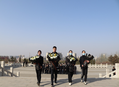 2023年4月1日早晨,beat365官方网站党委组织全院师生党员前往包头市井坪公园开展“缅怀革命先烈,传承红色基因”主题党日活动,全体师生党员110余人参加本次活动。