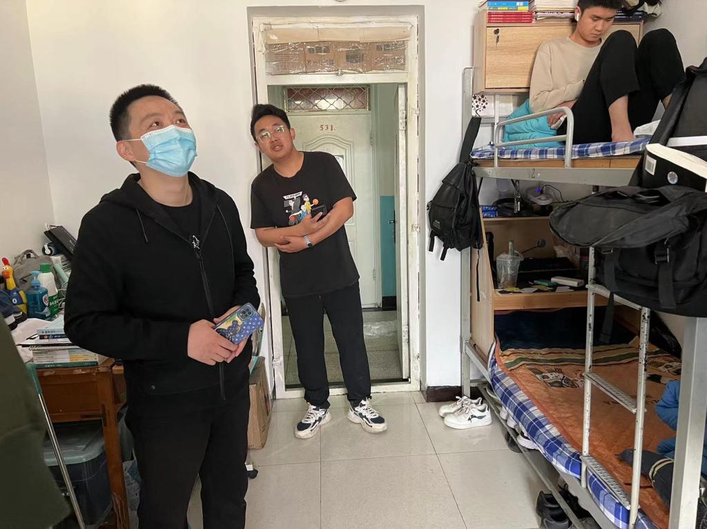 为切实维护校园安全稳定,及时整改消除安全隐患,营造健康舒适的宿舍环境,按照学院安全排查工作部署,2023年4月22日beat365官方网站组织全体班主任、辅导员深入学生宿舍,对学生宿舍5号楼、26号楼安全隐患启动拉网式排查。