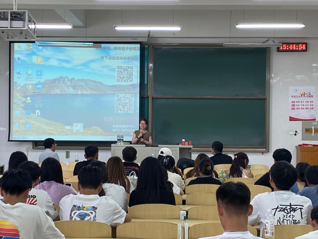 内蒙古荣曜科技有限公司总经理胡立业主要围绕个人理想、在校生活及就业建议等方面与在座学生进行深入交流,并分享就业创业经验,激励同学们要持续学习,不断完善自我、提高自我。