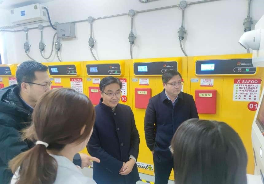 为进一步加强学校实验室危险化学品管理工作,有效预防和遏制危险化学品安全事故发生,11月28日上午,校党委委员、副校长赵永旺、实验室与设备管理处张利文处长、崔开源副处长等一行来beat365官网实地调研检查危化药品库,院党委书记罗强、院长李松波及危化药品库负责人陪同检查。