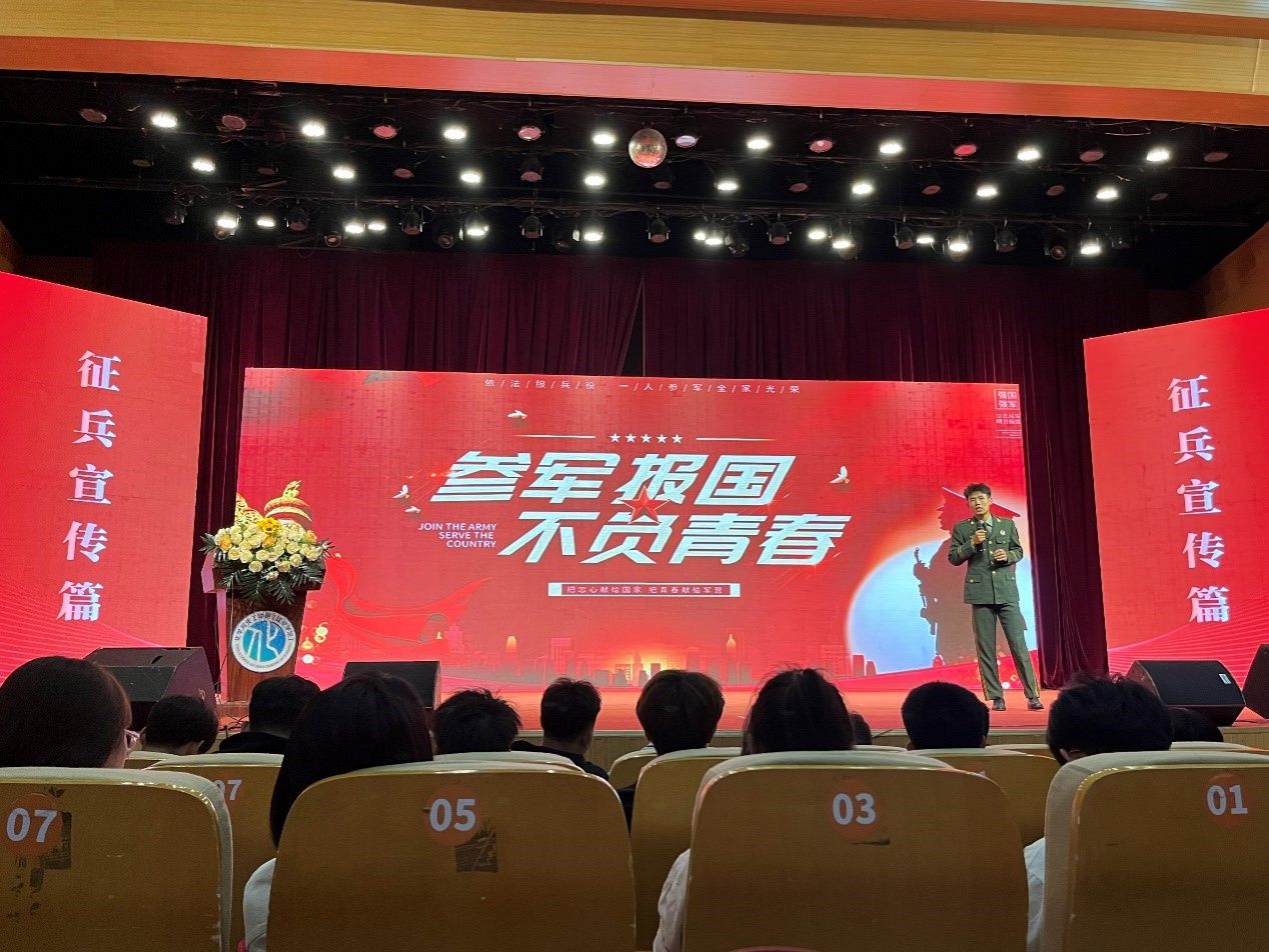 在征兵宣传篇,优秀退役学生代表贾宝鑫向大家分享了参军历程和心得感悟,用鲜活生动的事例再现了该生精彩的军旅生活,同时,详细解读大学生参军入伍的相关政策,积极引导广大同学携笔从戎,建功军营,为强国强军建设贡献积极力量。