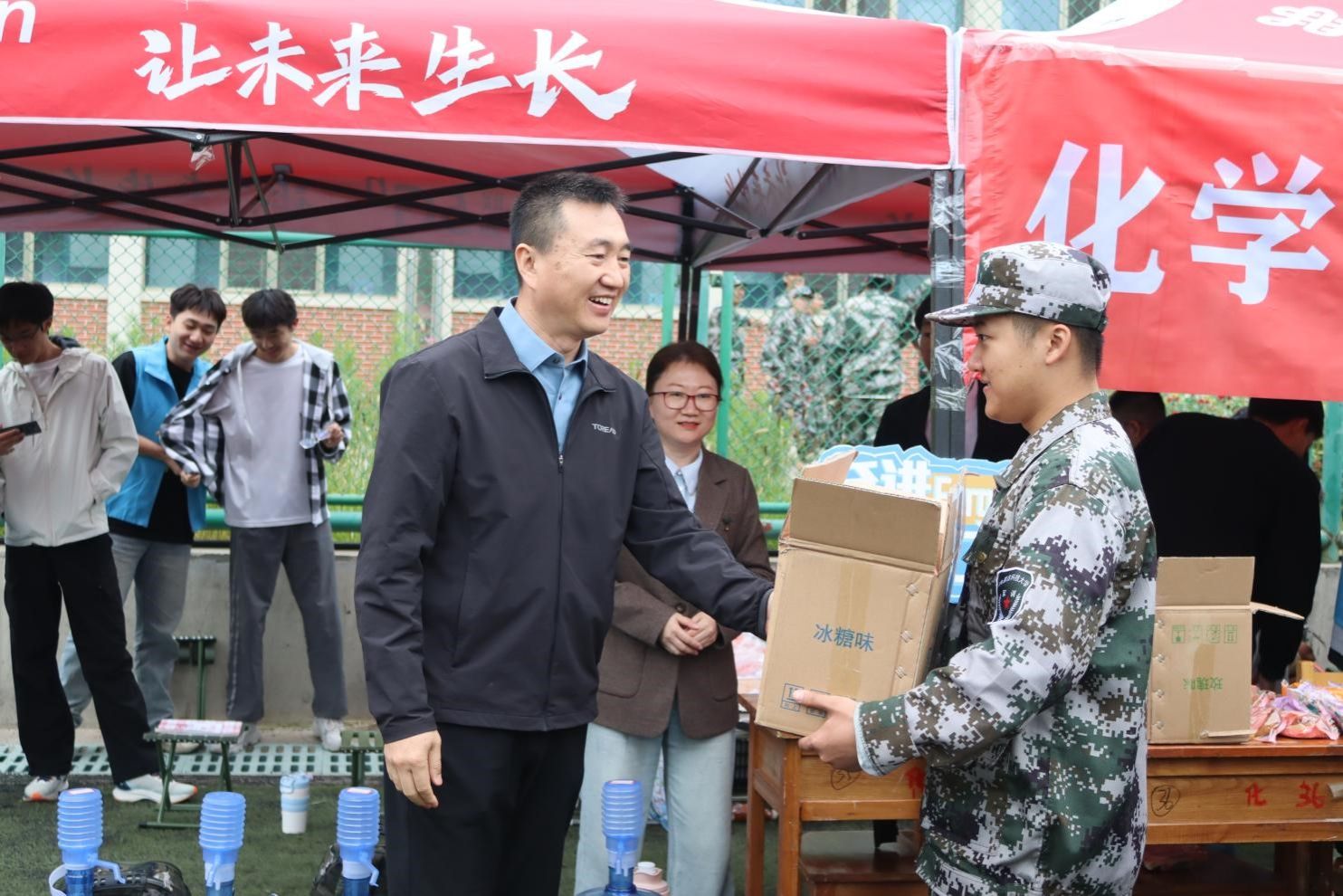 为让新生度过一个欢乐祥和的中秋佳节,感受来自学院的温暖与祝福,9月14日下午,院党委书记杨包生、副书记副院长冀虹及全体辅导员一行,带着学院对新生的深切关怀与殷切期望,深入军训场地,看望并慰问正在紧张军训的2024级教官和新生。