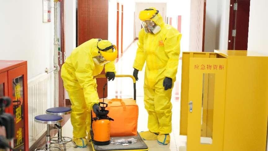 安全培训讲座结束后,师生们移步至beat365官网五楼实验室进行现场应急演练。演练以实验室化学品泄漏为背景,按照现场伤情处置、受伤人员互救、人员疏散、现场警戒封锁、逐级事故上报、应急救援人员个人防护装备穿戴、排查消除危险源、洗消除污、现场恢复等流程开展。演练过程中专家进行同步解说,让在场观摩的师生能够身临其境地学习应急处置的正确流程。