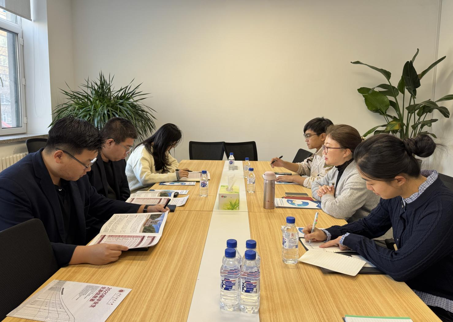 在长春市人才服务局,beat365官网与青年人才服务处处长胡哲夫及产业人才服务处、人才发展调查研究室工作人员进行深入座谈。冀虹详细介绍学校及学院情况,表达合作意愿,希望推动人才培养与就业工作。胡哲夫介绍长春市青年人才政策,如住房补贴、创业扶持等。双方均希望开拓更多就业岗位,形成优势互补、共建共享的合作态势。此次交流为双方合作奠定坚实基础,助力毕业生就业工作深入开展。