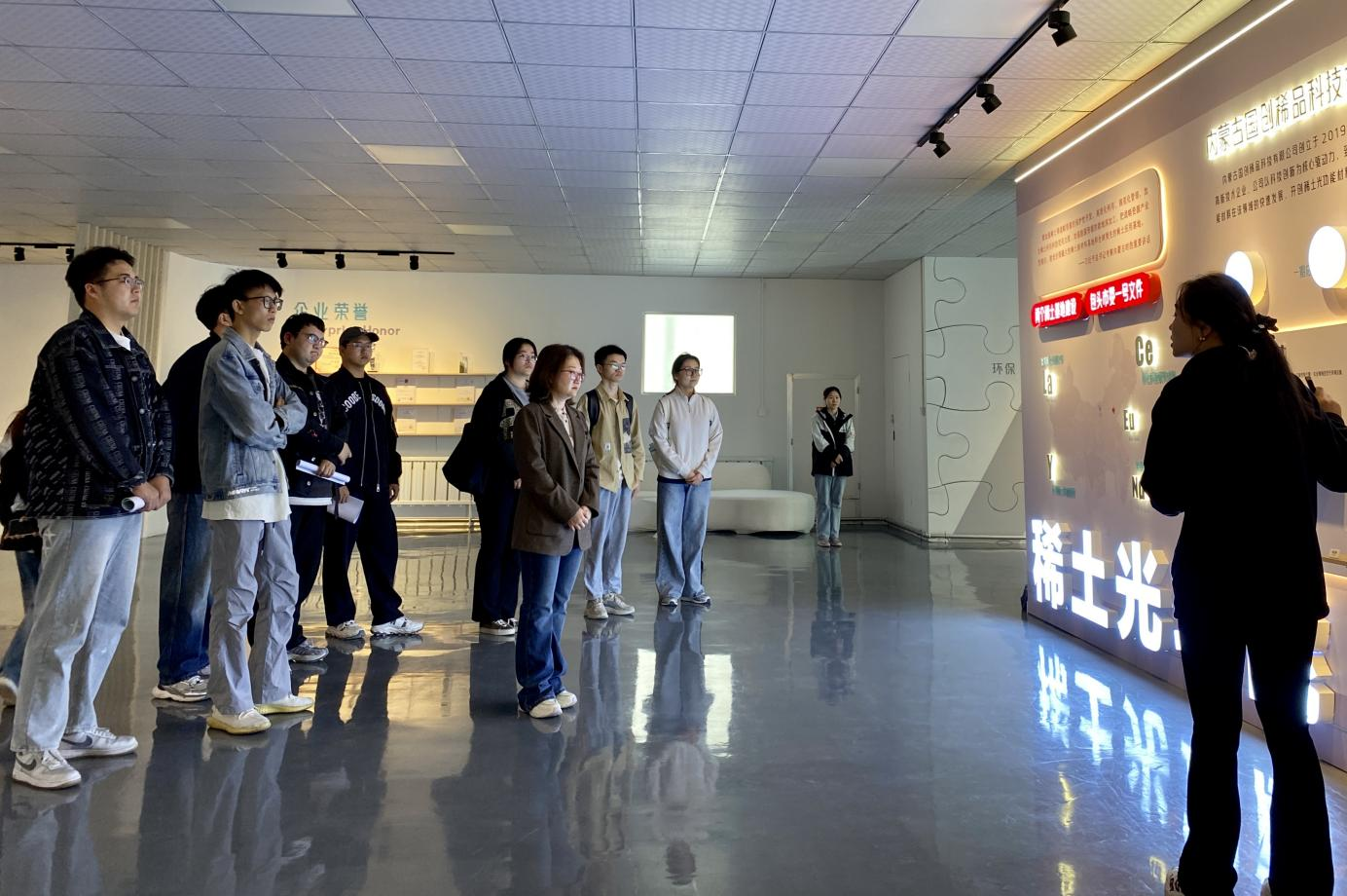 在企业负责人的带领下,师生依次参观企业展厅、生产车间、办公生活等区域,近距离了解了企业稀土光功能材料与终端应用的研发,涵盖稀土光转化、稀土发光、稀土光显色三大领域,体验了稀土RES彩色墨水屏系列等终端应用产品。通过实地参观、座谈交流等方式,详细了解了企业的发展状况、业务范围以及人才需求,使学生们实际感受了真实职场环境。