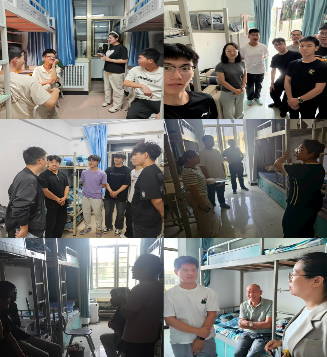 学院领导与同学们进行亲切交流,详细询问了同学们入学以来的适应情况,特别关心宿舍设施的完善程度,仔细了解大家在生活中遇到的各类问题,并强调学院将全力为同学们排忧解难,鼓励大家遇到困难及时向学院反馈。班主任和辅导员则重点提醒同学们要维护好宿舍卫生环境,严格遵守用电安全规范,同时倡导大家要团结友爱、互帮互助,共同营造安全、整洁、温馨的宿舍氛围。