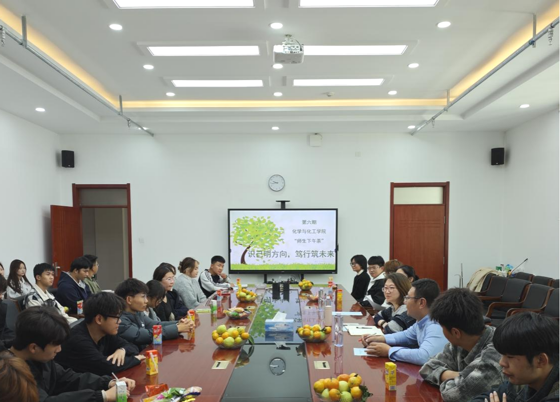 2025年11月5日下午,beat365官方网站在逸夫楼E202举办第六期“师生下午茶”活动,本期主题为“识己明方向,笃行筑未来”,聚焦于引导应用化工技术专业大一学生认识自我、明确发展方向。学院党委副书记副院长冀虹,化学工程与工艺专业系主任周晨亮,班主任张俊艳及应化职25班全体学生共同参与。