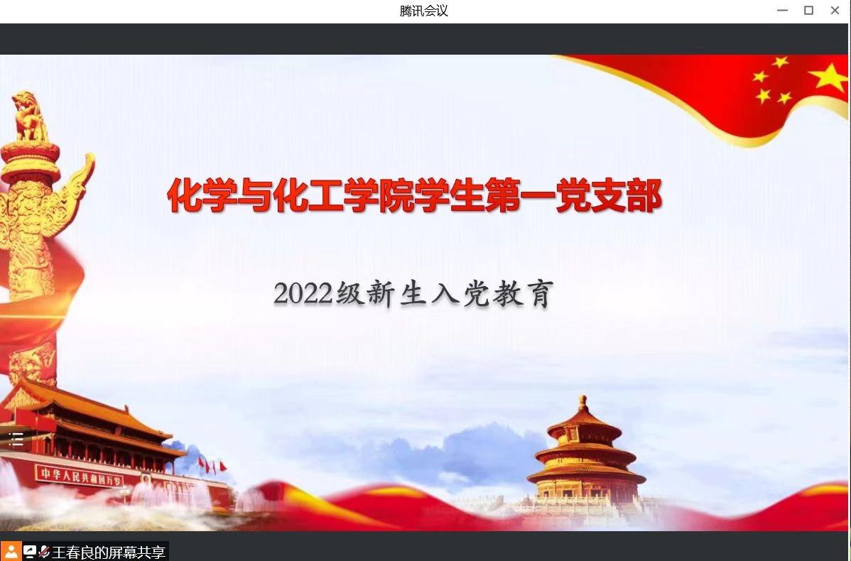 2022年9月7日上午11:00,beat365官方网站学生第一党支部通过腾讯会议开展线上2022级化学工程与工艺专业全体新生入党教育活动。