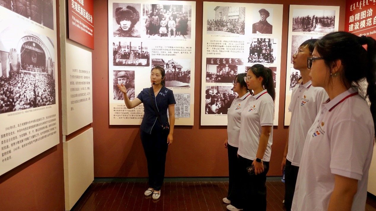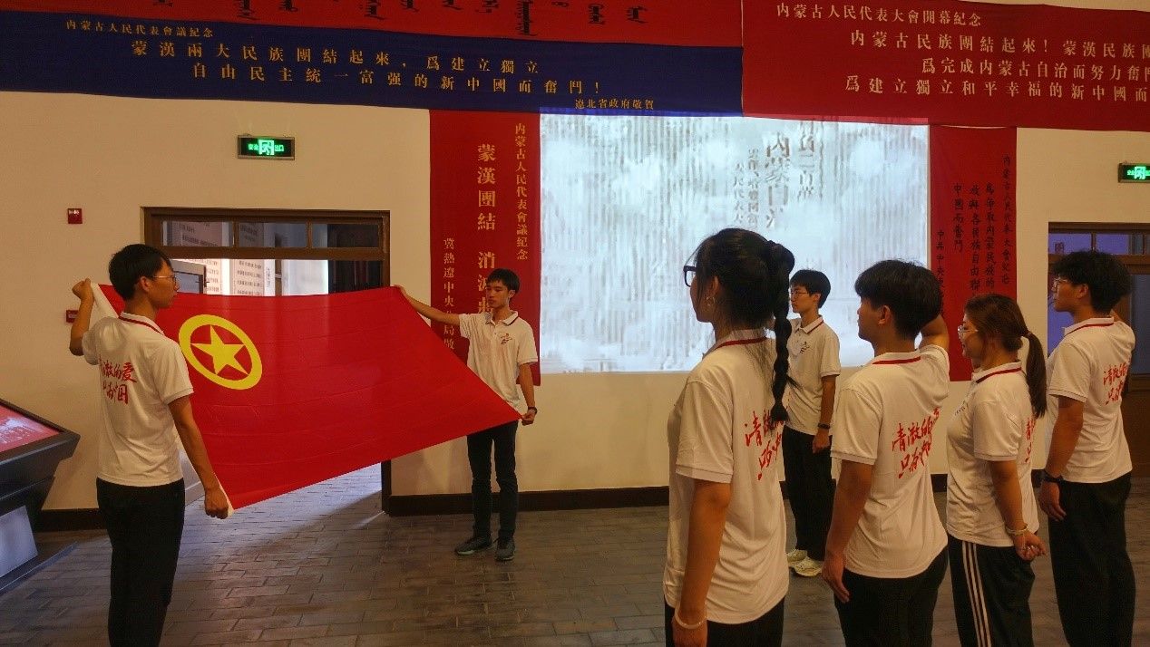 在内蒙古118.3万平方千米的生态画卷上,兴安盟,犹如一颗绿色宝石镶嵌在画卷的东北部,其西北部与蒙古国接壤,边境线长126千米,总面积55131平方千米,是我国北方生态安全屏障的重要组成部分。为加强新时代爱国主义教育,传承和弘扬爱国主义精神,在卫国戍边专项活动开展之前,实践团队于8月8日首先来到兴安盟乌兰浩特市“一馆三址”开展红色主题系列活动,重温红色记忆,感受革命岁月。