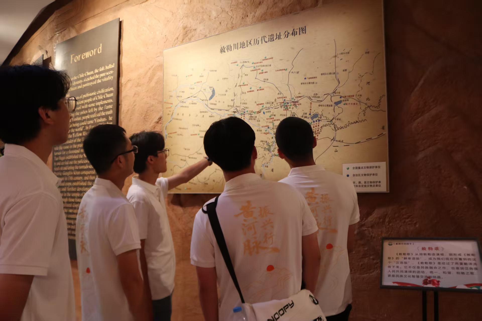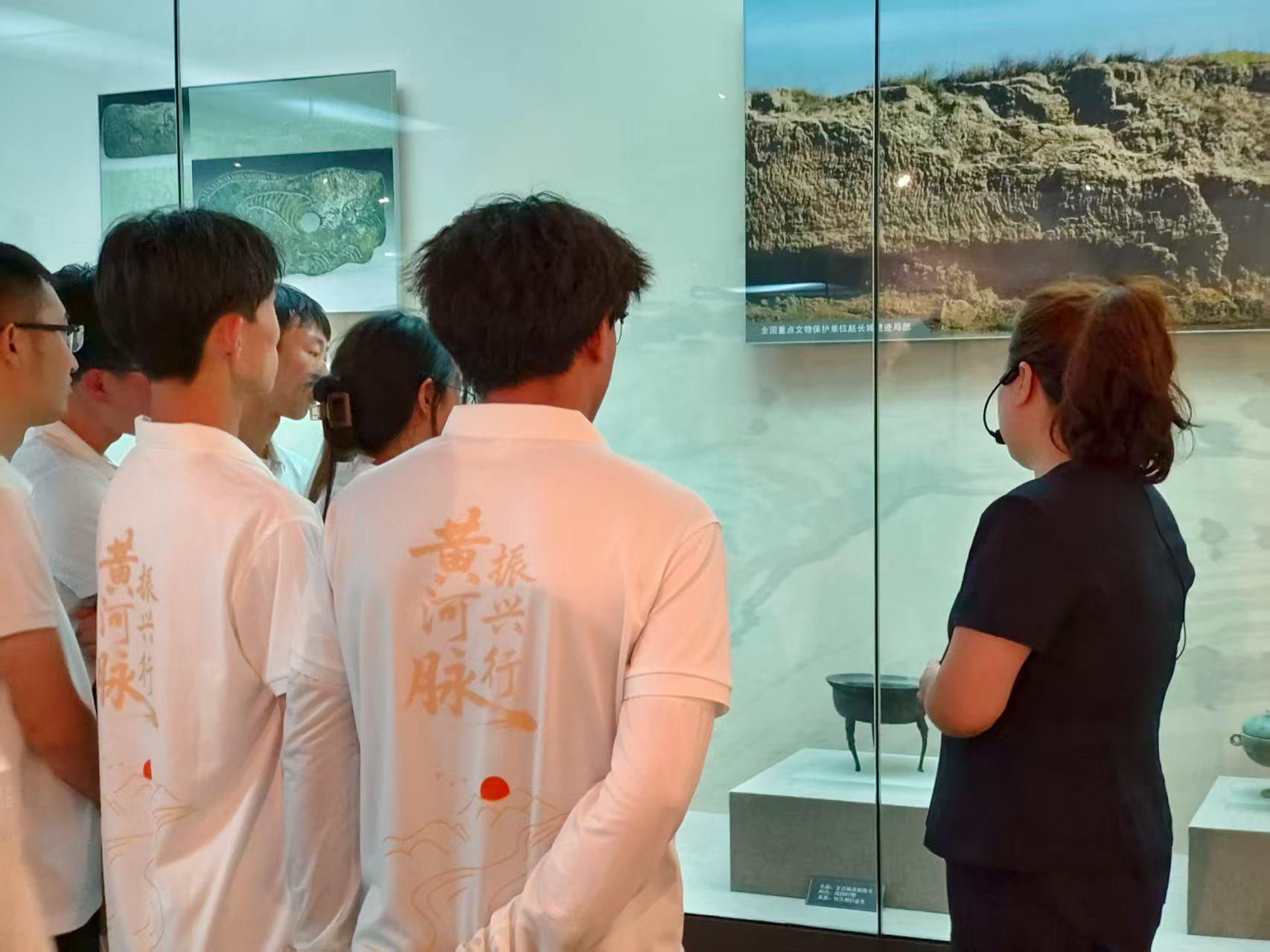 团队成员们来到被誉为“草原文明活化石”的敕勒川博物馆,探寻黄河流域的悠久历史和灿烂文化。在讲解员的带领下,直属队先后走进了“历史、革命史、民俗”三个展厅,通过一件件文物深刻理解了黄河流经内蒙古地区的文明发展、多民族交往交流交融和共同建设祖国北疆的历史进程。