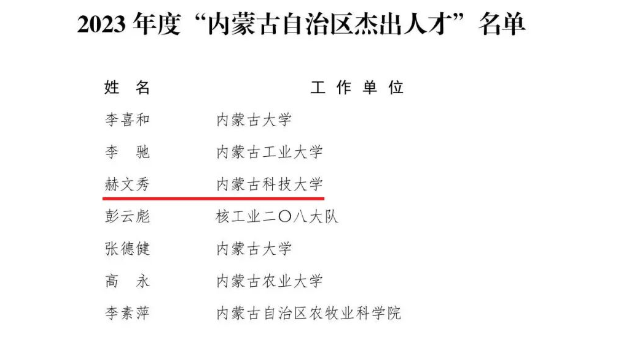 beat365官网副院长赫文秀教授荣获2023年度“内蒙古自治区杰出人才奖”