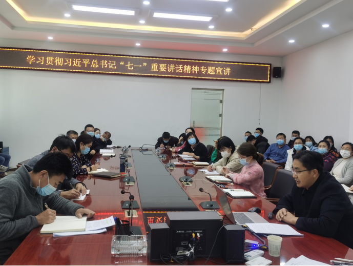 2021年11月11日下午13:00,beat365官方网站在逸夫楼E202会议室开展教职工政治理论学习。本次学习邀请beat365官方网站党委委员、宣传部部长赵永旺为beat365官网教职工作学习贯彻习近平总书记“七一”重要讲话精神专题宣讲。