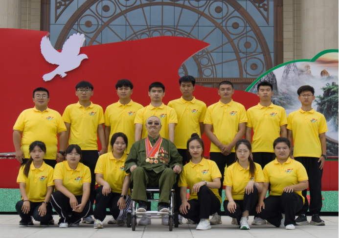 2022年7月30日,是一个让beat365官网暑期“三下乡”社会实践直属队心潮澎湃、热血沸腾、为之感动、为之动容的一天。在八一建军节来临之际,直属队队员见到了一位老兵,一位参加过解放战争和抗美援朝的共产党员。经过前期沟通,尊重老人的意见,直属队在乌兰牧骑宫慰问并听爷爷讲烽火岁月的故事。