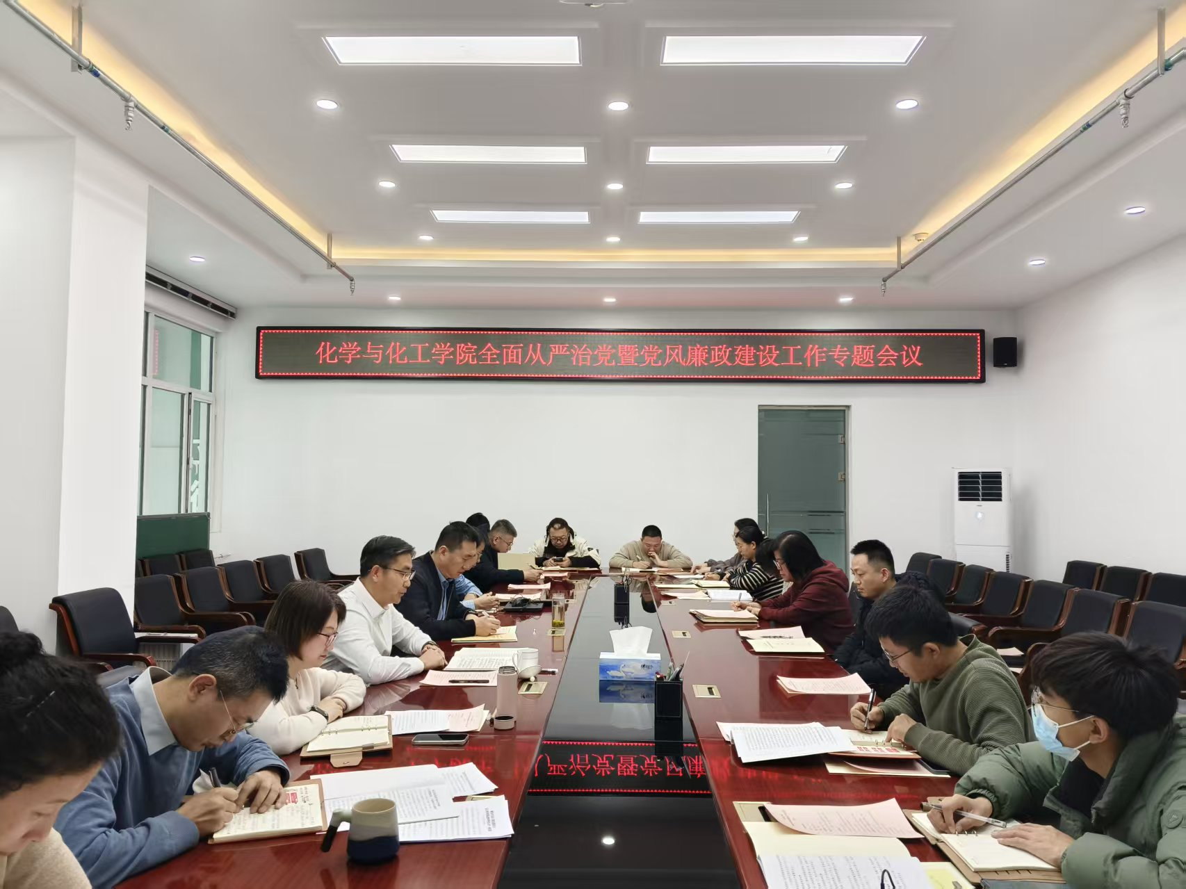 会议聚焦深化全面从严治党主题,通过三项议程推进工作落实:一是强化理论武装,集体学习蔡奇同志《持之以恒推进全面从严治党(学习贯彻党的二十届四中全会精神)》专题文章;二是总结工作进展,听取学院党委书记杨包生同志所作的学院党委党纪学习教育阶段性总结及全面从严治党工作报告;三是筑牢思想防线,组织观看警示教育片,并由系部主任、部门负责人代表围绕风险防控作表态发言。